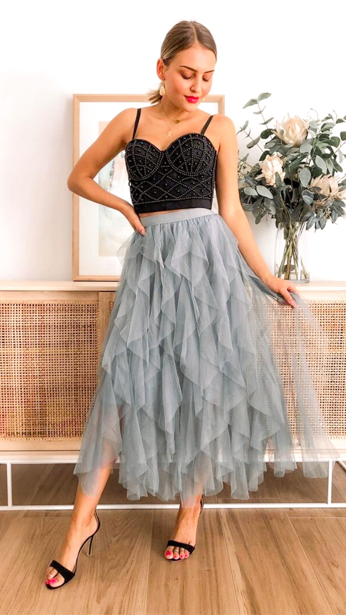 This elegant, flowing skirt is perfect for any special event, giving you a unique and eye-catching style. Its lightweight fabric is soft and comfortable, making it a pleasure to wear all night long. Make a lasting impression with Arabelle.