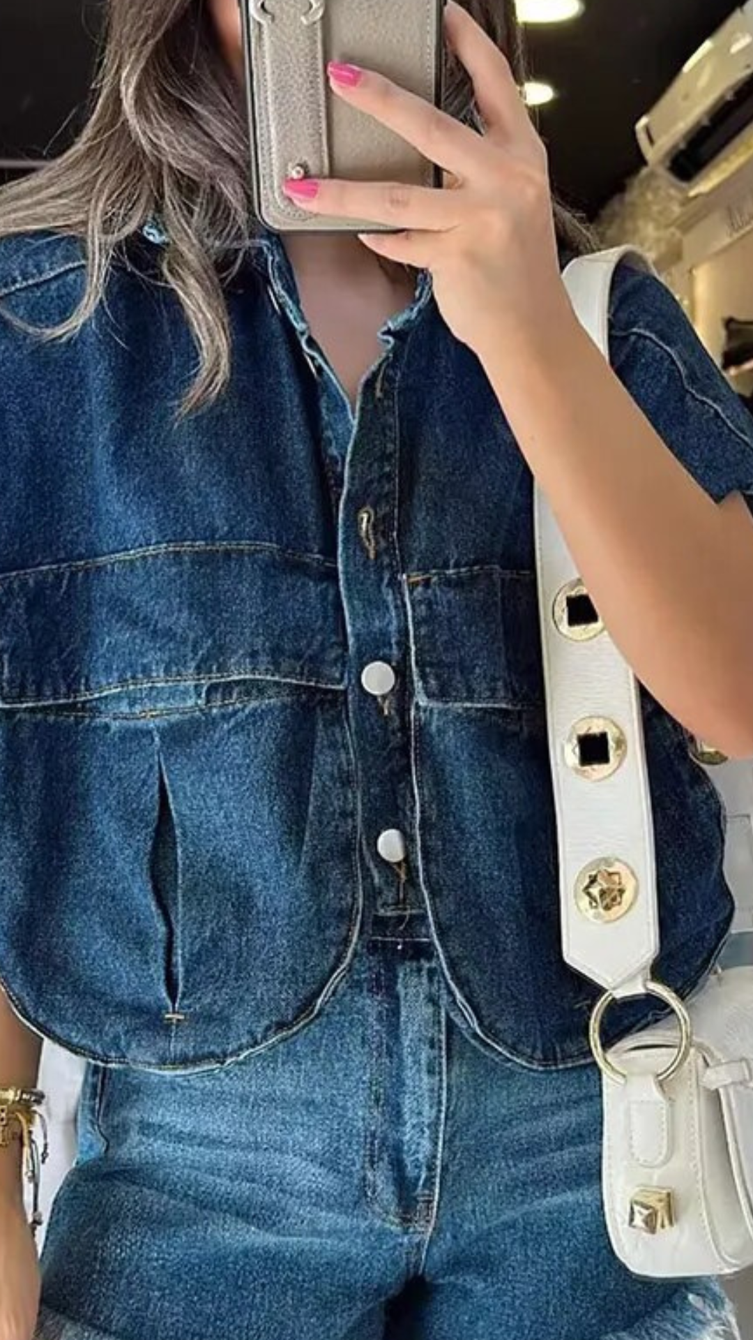 Featuring a button closure, turn down collar and breast pockets, you can wear it on its own or as an eye-catching vest over another item.