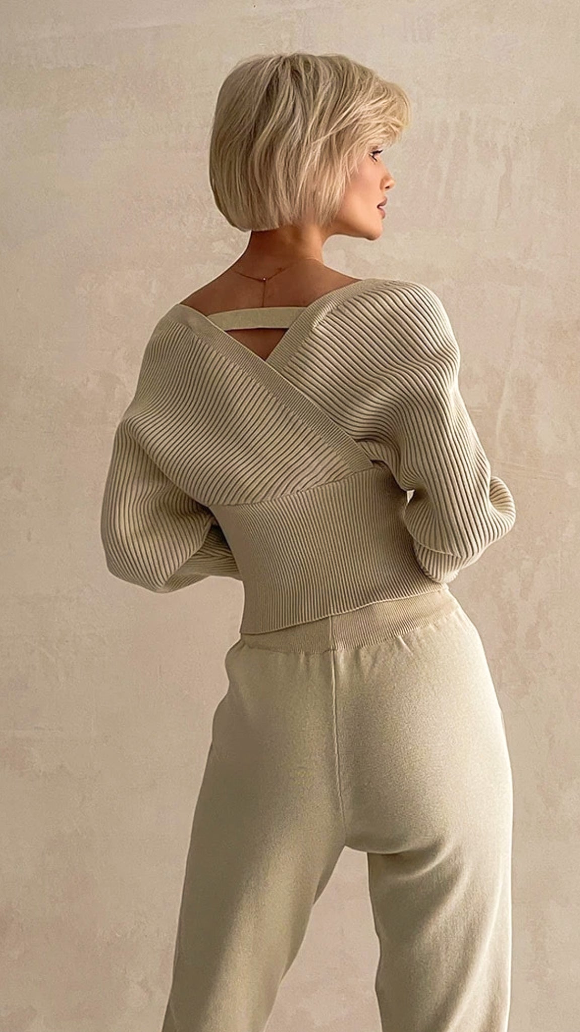 Made with a luxurious cotton viscose blend knit fabric, this set features a v-neckline that can be worn off-shoulder for a sexy and feminine touch. The unique ribbed knit top and drawstring pants with pockets add both fashion and function to this must-have set.
