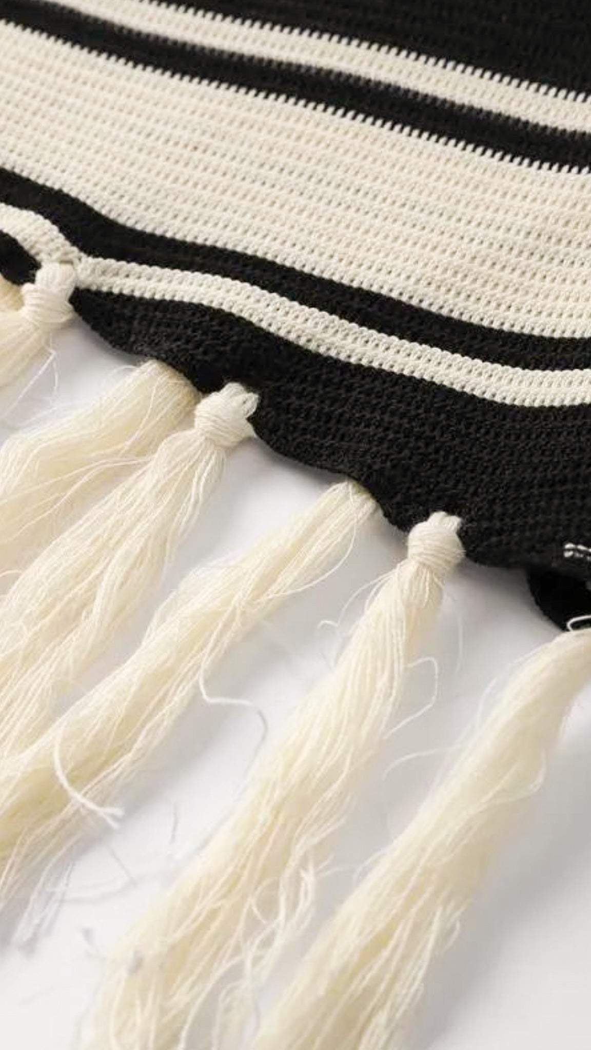 Embrace bohemian chic with the Iris Tassel Fringe Chevron Striped Dress!