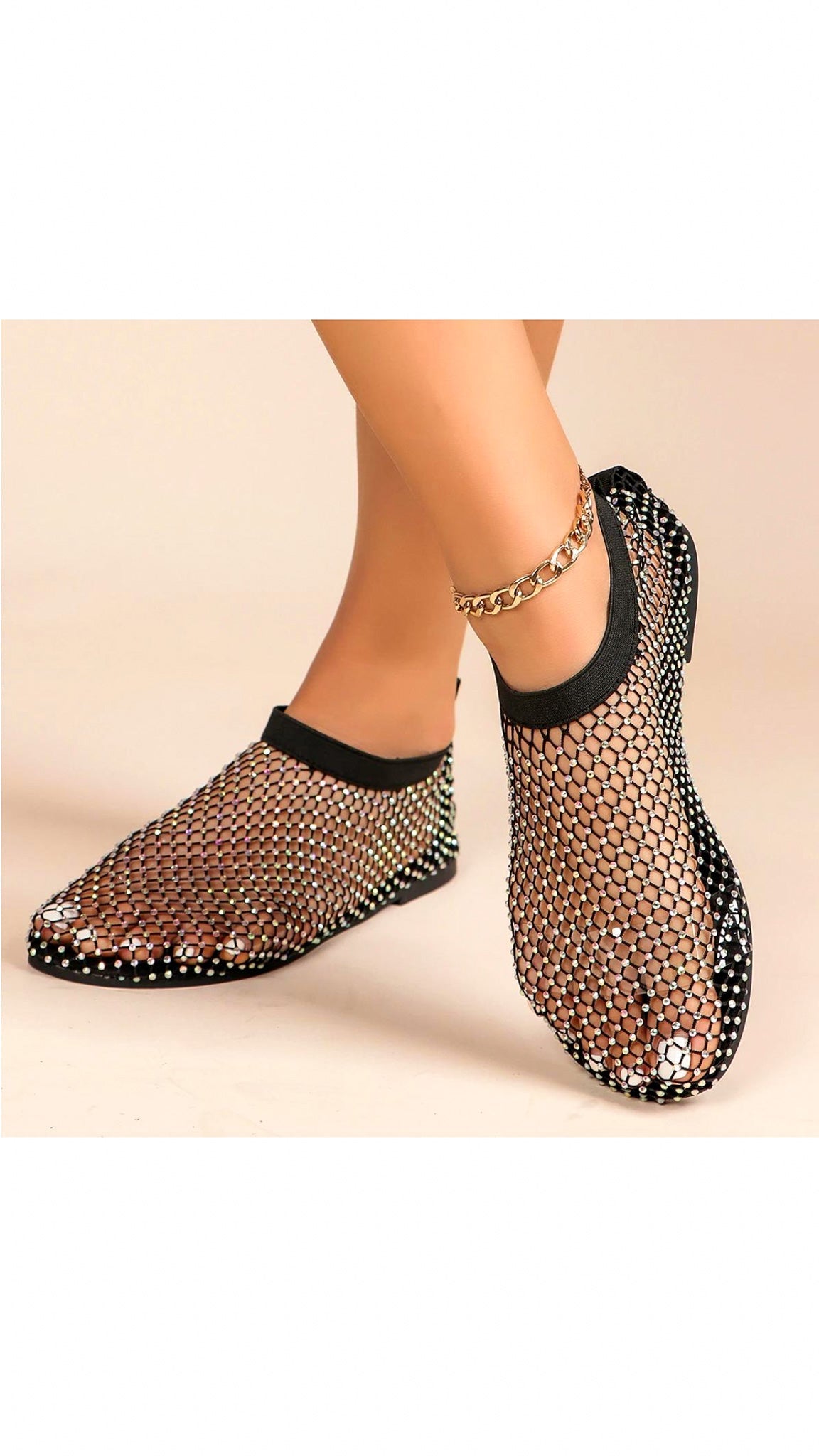 Step into enchanting elegance with our Lucille Diamante Embellished Mesh Flats!